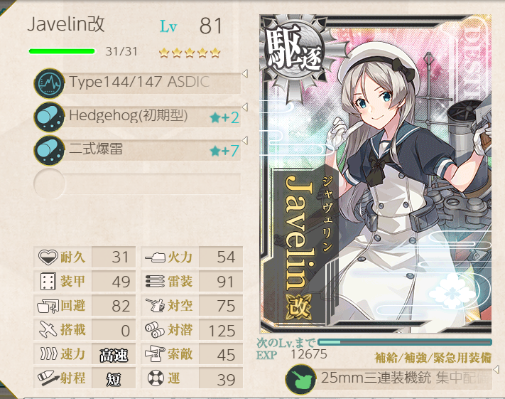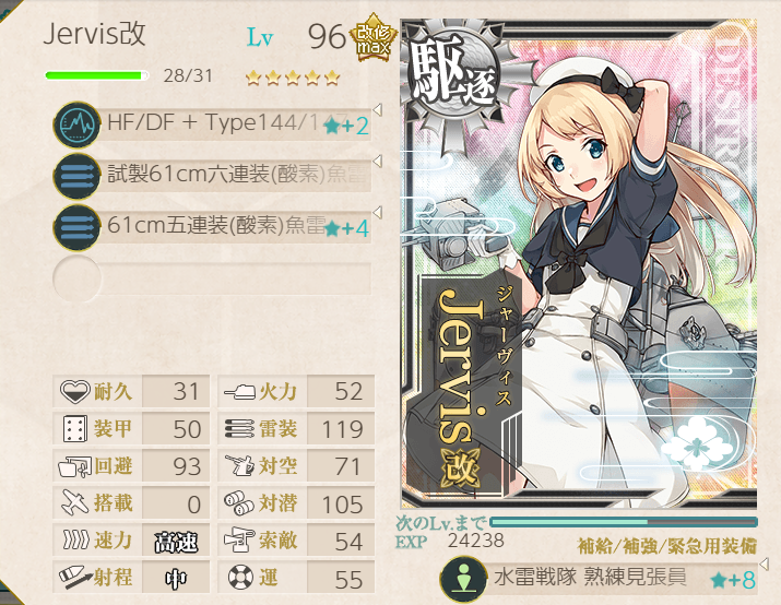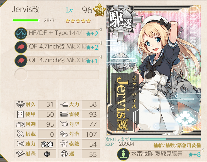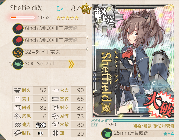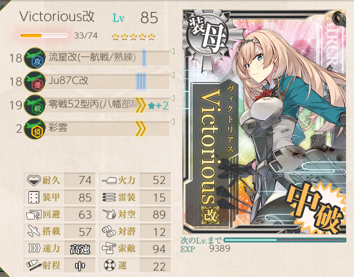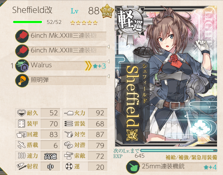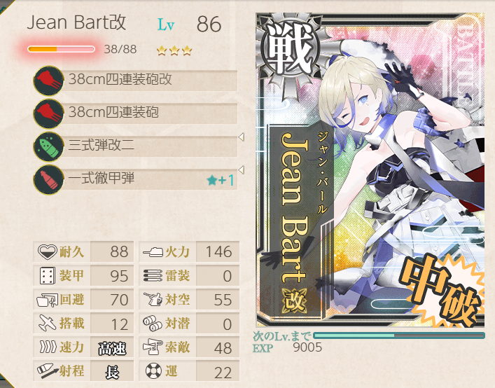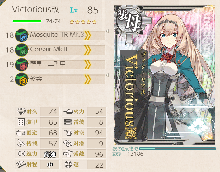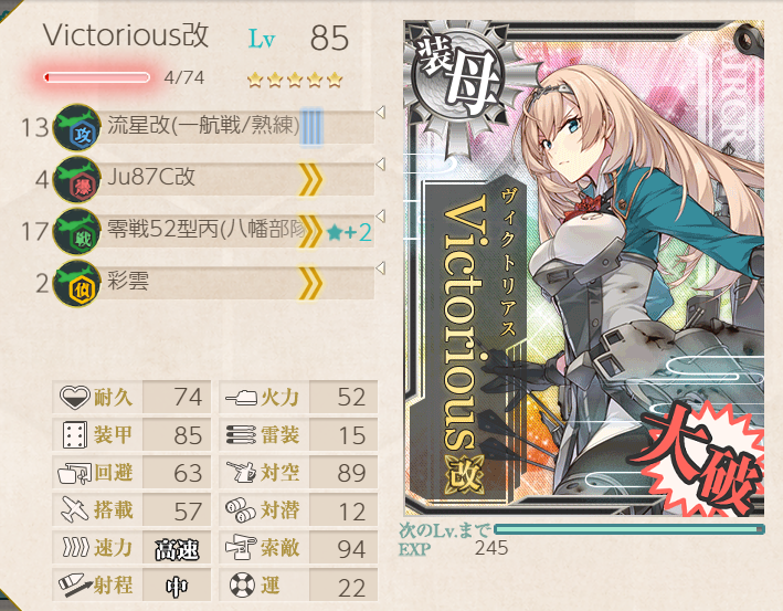 The boss was not particularly challenging, especially with Richelieu and Jean Bart (though the French touch didn't trigger particularly reliably). Ark and Vicky did very well, as well as Zuihou with historical planes. Ultimately, Sheffield brought the boss down to around 100 HP (from full) in night battle, with a cut-in from Jervis doing the rest of the job.