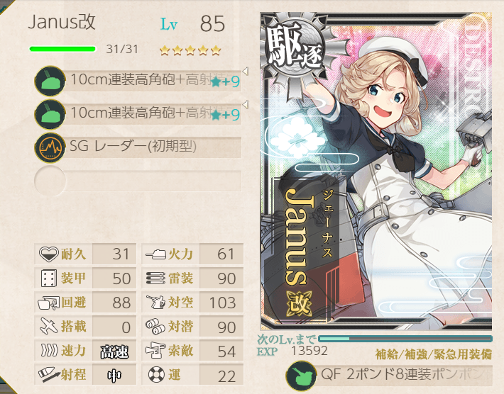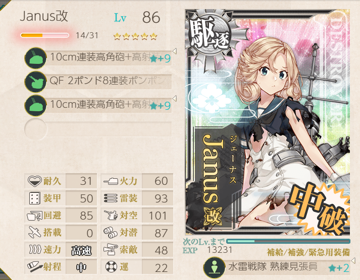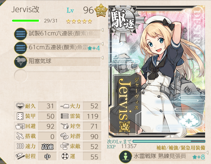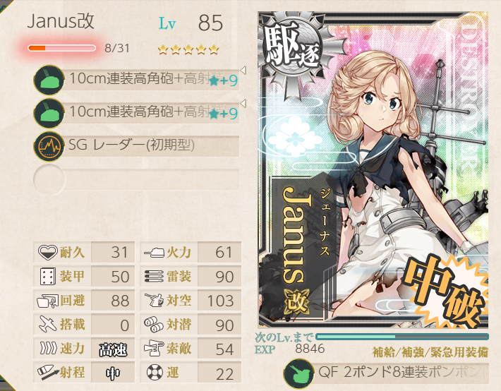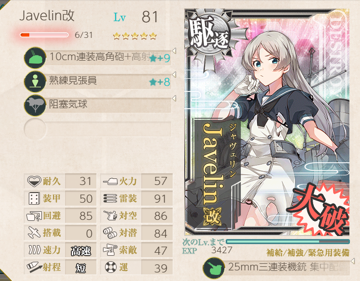 Here we go! A straight-forward combat phase. Javelin's OASW was very helpful for increasing pass rate on U (or lessening damage). Otherwise, Janus and Javelin were set up for anti-imp duty. Not sure about necessity of the balloon on Jervis, however. Cut-in on Take, once again, didn't really do much in the end.