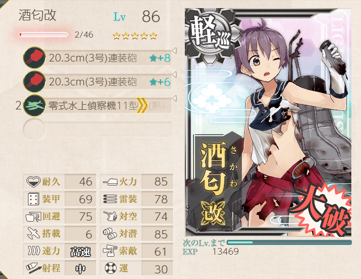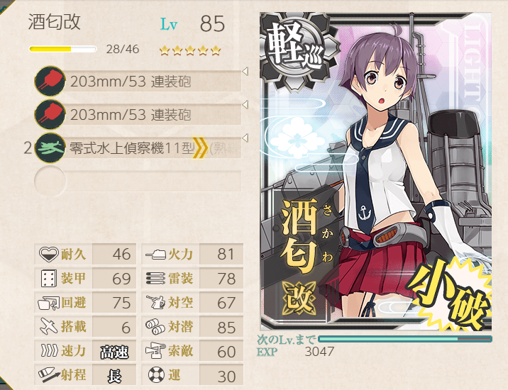final battle, Yahagi had been taiha from Node N, but Kitakami (chuuha from