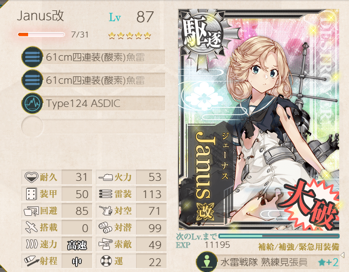 Same as the G2 unlock fleet, except Janus was given a little more ASW
