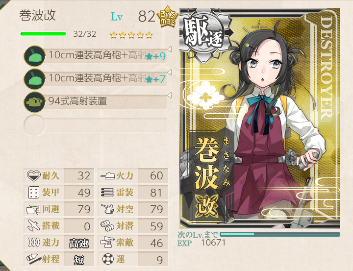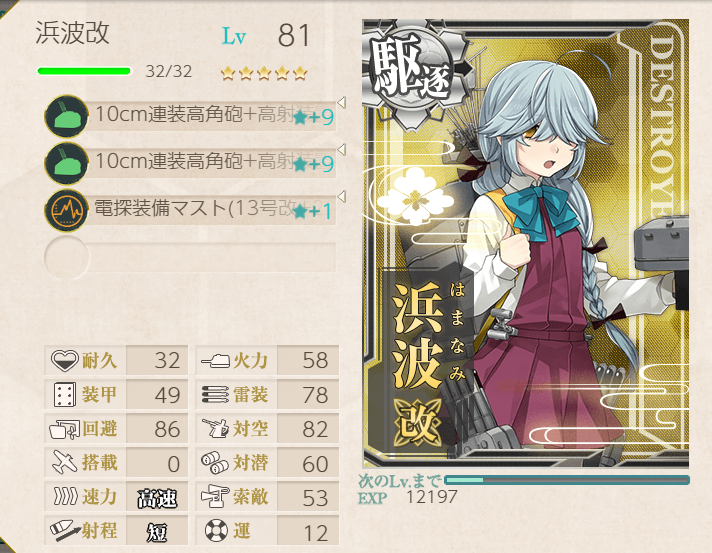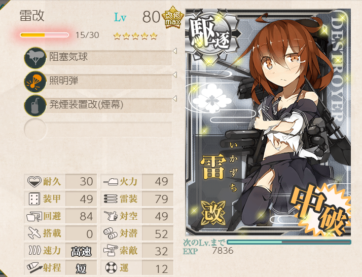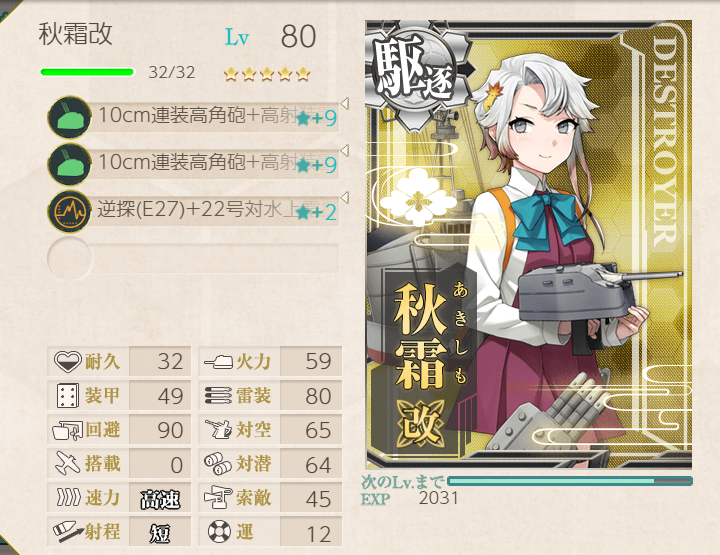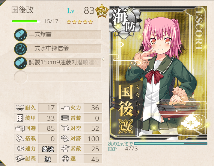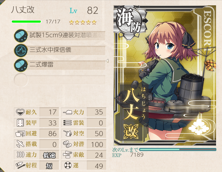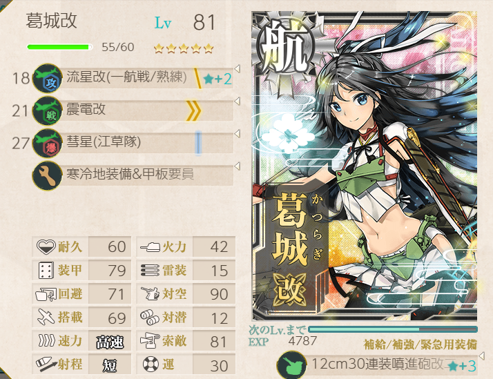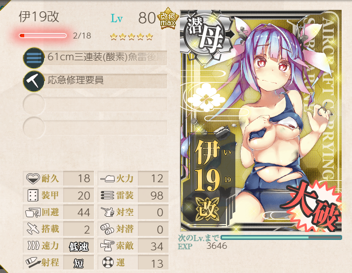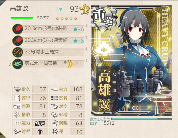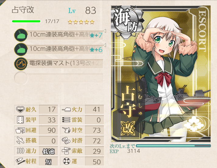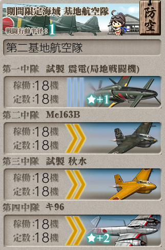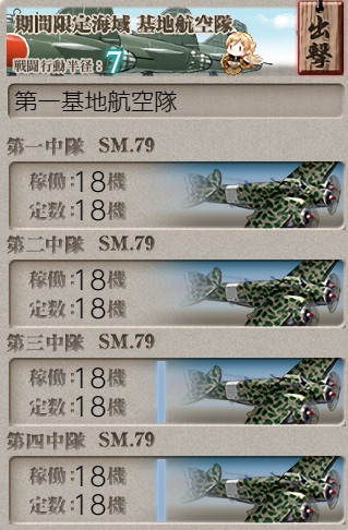 The Shimushu-class takes care of the submarines, and Nagara (+ Shimushu herself) takes care of the AA! Node H was a little challenging with this fleet, but adding LBAS helped immensely (four bombers, all to H).![]() | ![]() |