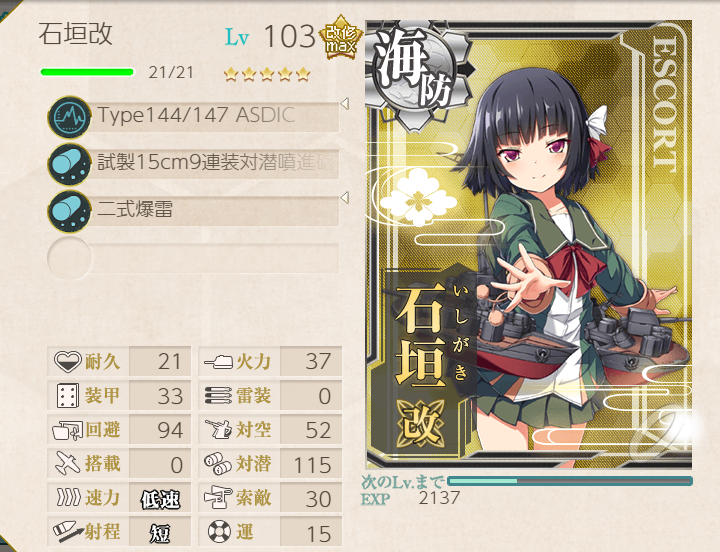 Basic fleet, with a little extra AA. Ishigaki didn't need to have ASW equipment, but no need to change it...![]() | ![]() |