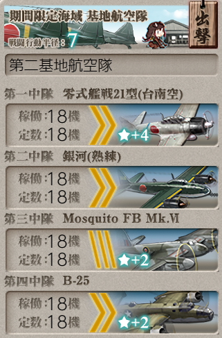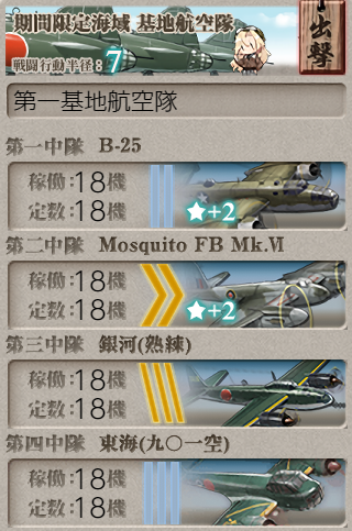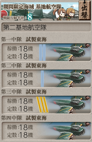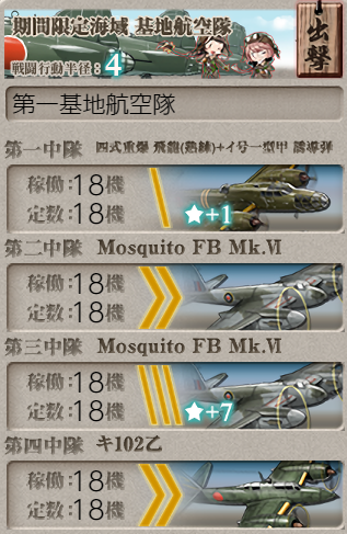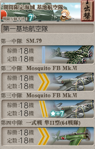 The same fleet as above was used to get AS on node F, other than Katsuragi only having fighters for a total air power of ~276. Both LBAS were sent to node D for assistance, though that was probably not necessary.![]() |